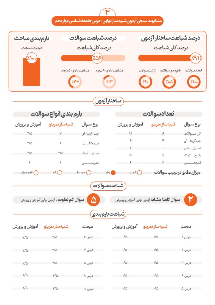 تحلیل مشابهتسنجی امتحان نهایی خرداد جامعه شناسی 3 و آزمون شبیهساز نمرینو