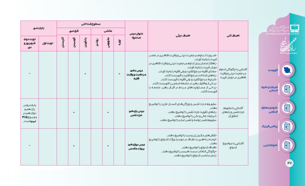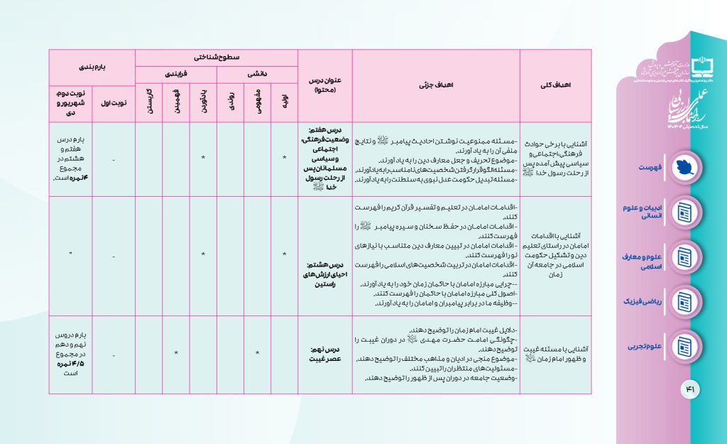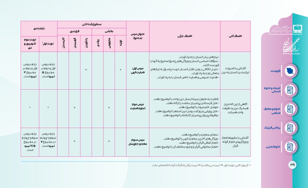 جدول بارمبندی دین و زندگی یازدهم