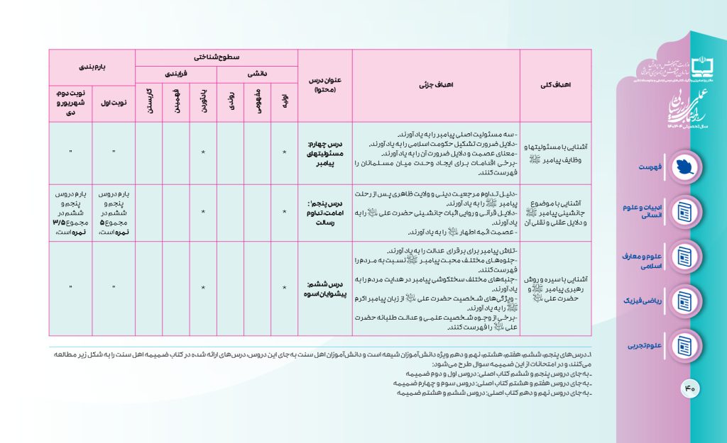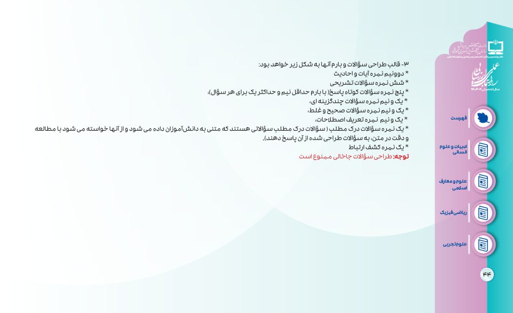بارمبندی درسهای دین و زندگی یازدهم 1405-1404