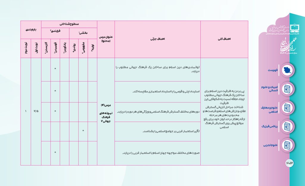 - درس چهارم: نمونههای فرهنگ جهانی (2) – ۱ نمره