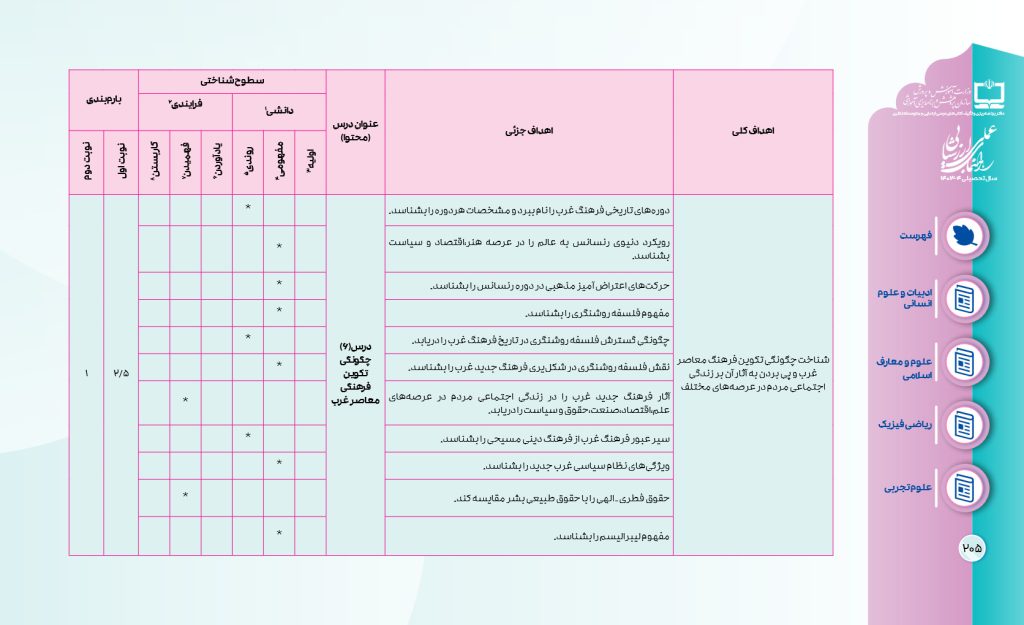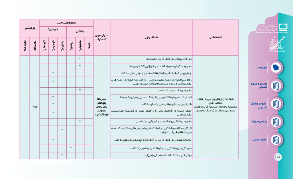 - درس پنجم: باورها و ارزشهای بنیادین فرهنگ غرب – ۱ نمره