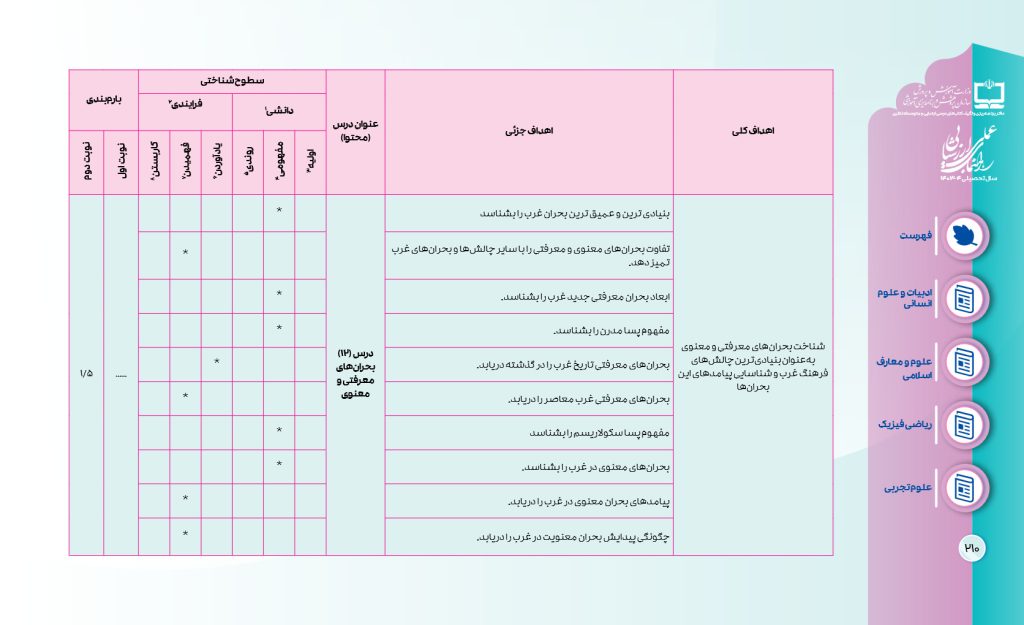 - درس دوازدهم: بحرانهای معرفتی و معنوی – ۱.۵ نمره