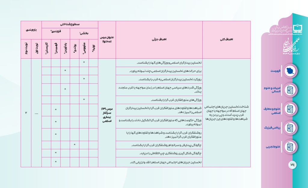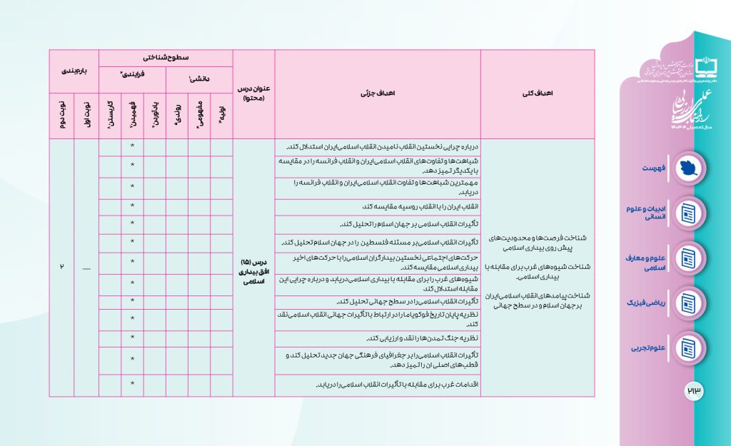 - درس پانزدهم: افق بیداری اسلامی – ۲ نمره