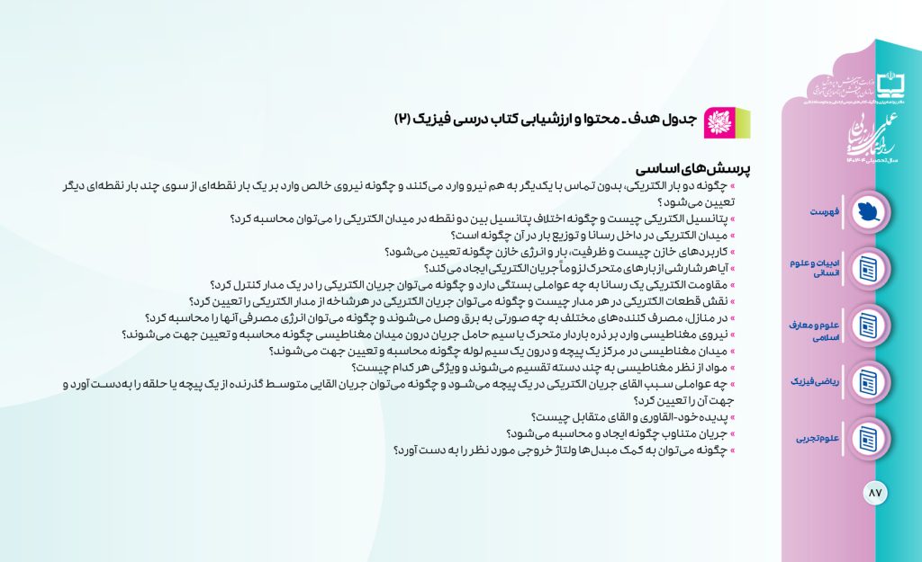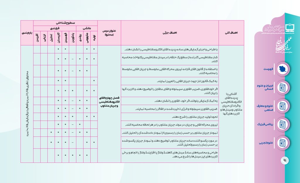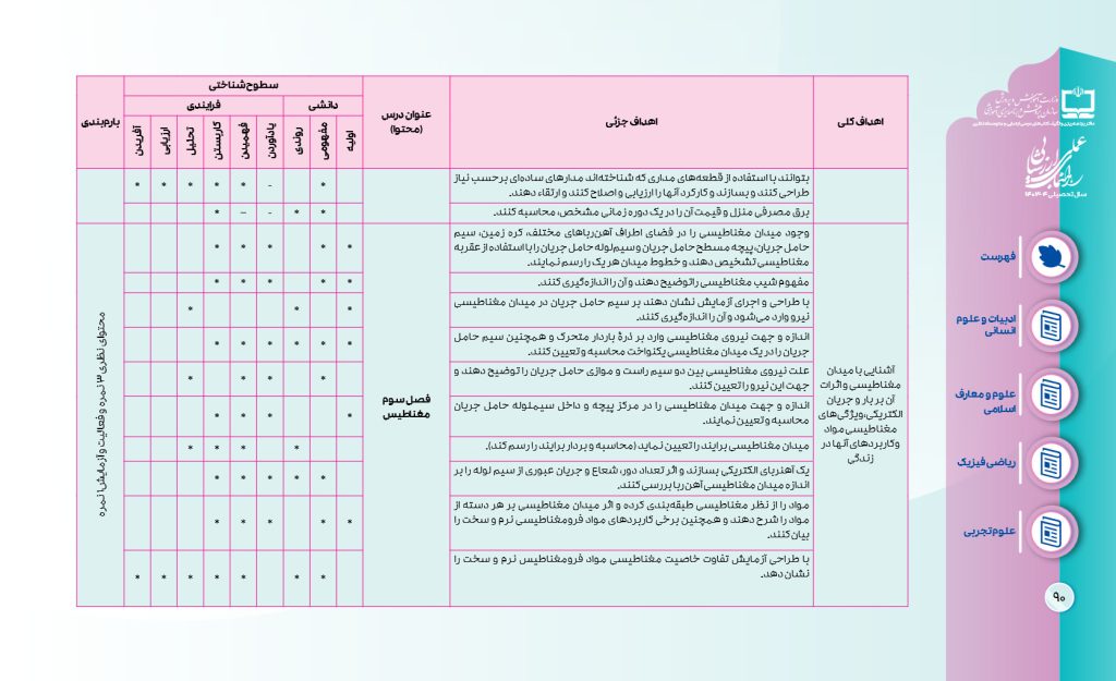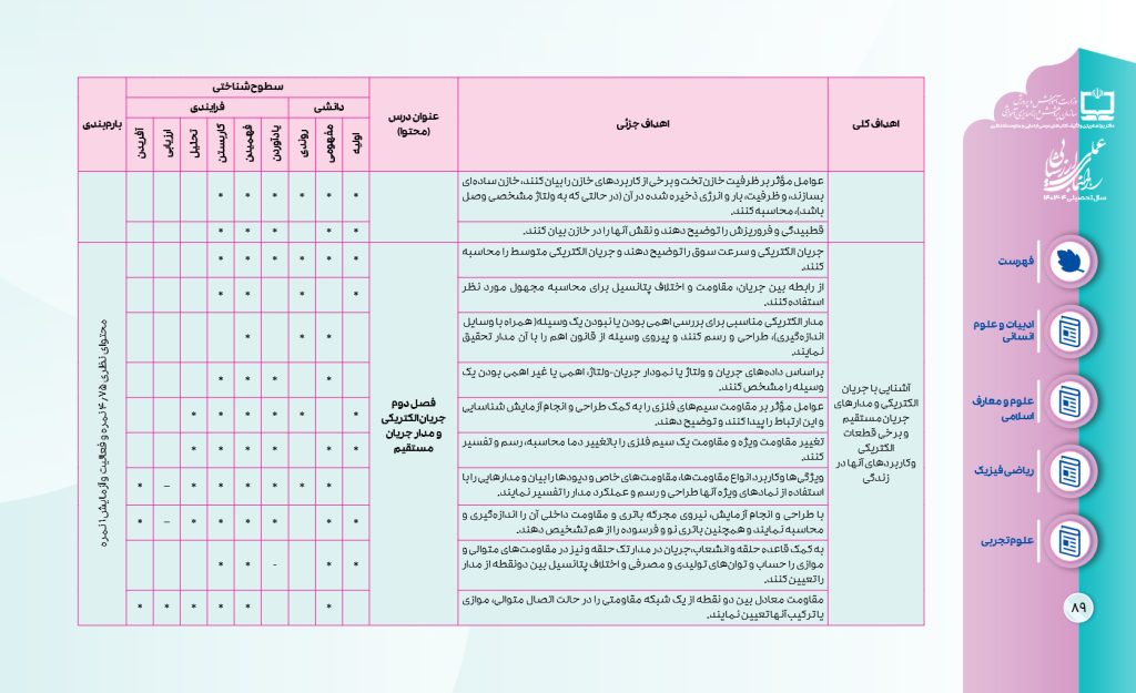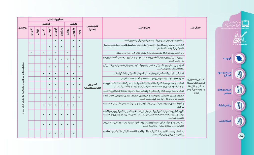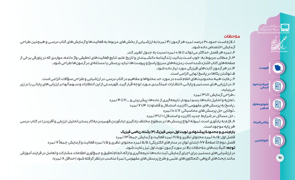 جدول بارم‌بندی فیزیک یازدهم ریاضی